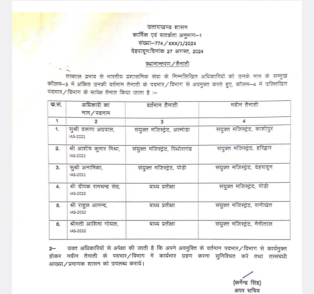 Six Ias Officer Transfer Today See List Here Uttarakhand News In Hindi – Amar Ujala Hindi News Live